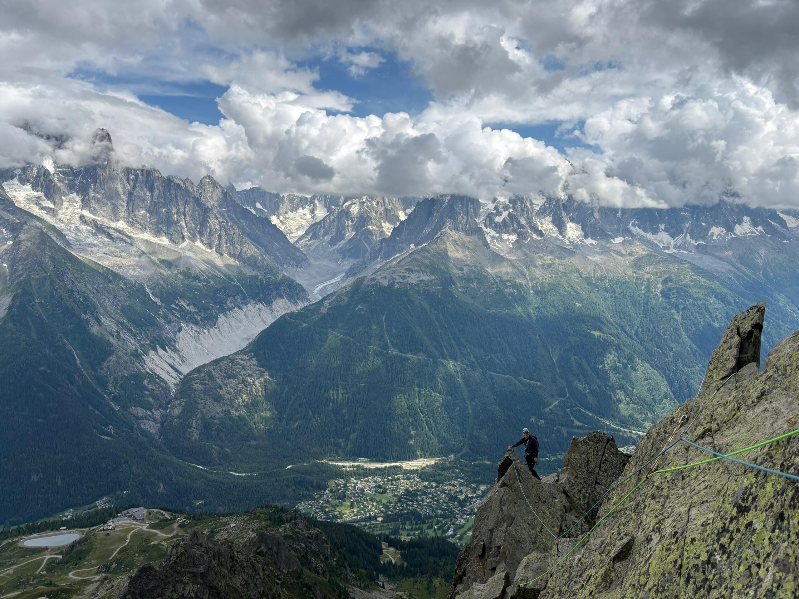 Alan on the spine on Aiguille d'Entréves. 📸: Scott Campbell (climber: Alan Rowe)