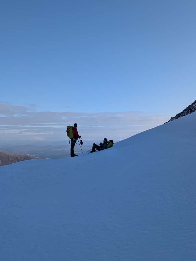 A classic laddie hangover on the In Pinn. 📸: Katie Knight (“climber” (bivi bag huddler): John Cunningham)