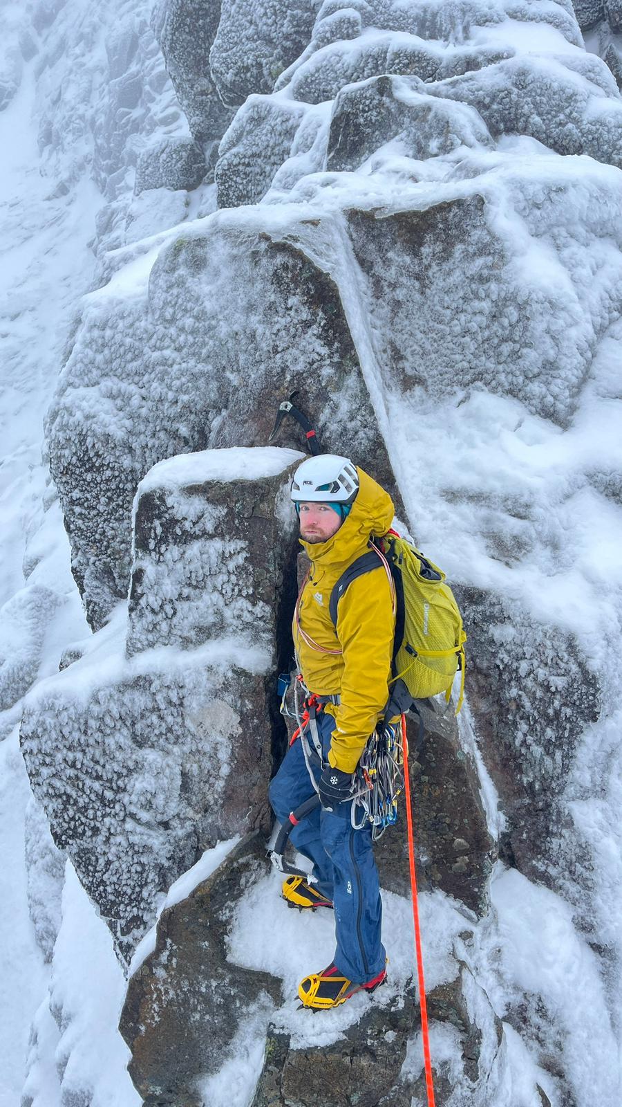 John on West Flank. 📸: Baptiste Poursat (climbers: John Cunningham and Cammy Anderson)