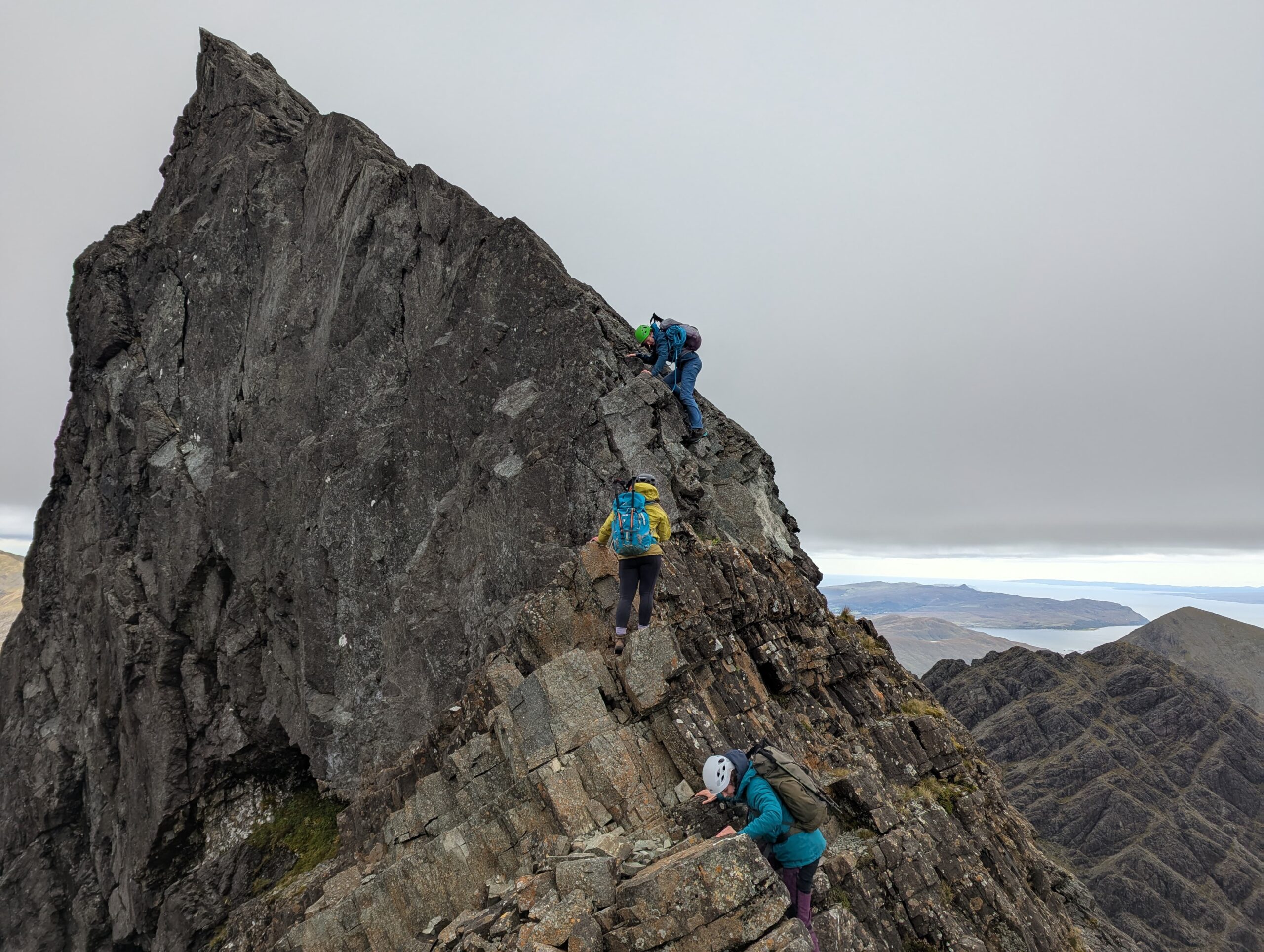 Clach Glas Traverse. 📸: Rory Murphy (climbers: Ruth MacDonald, Christabel Goode, Amber Reeves)